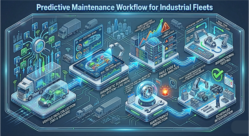 Whether managing logistics trucks, construction vehicles, service vans, or mixed-brand industrial fleets, investing in predictive vehicle maintenance solutions supported by professional diagnostic scan tools creates long-term operational resilience. Ultimately, predictive maintenance empowers industrial fleets to operate smarter, safer, and more efficiently turning vehicle data into a strategic advantage rather than a missed warning.