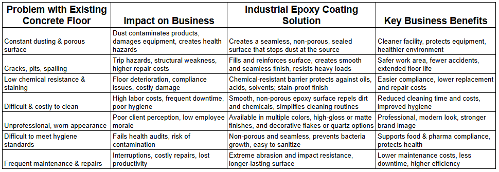 By making this strategic investment, you're choosing unparalleled durability, superior chemical resistance, enhanced safety, and effortless maintenance. You're not just getting a new floor; you're future-proofing your facility, reducing long-term costs, and elevating the professional image of your entire business.